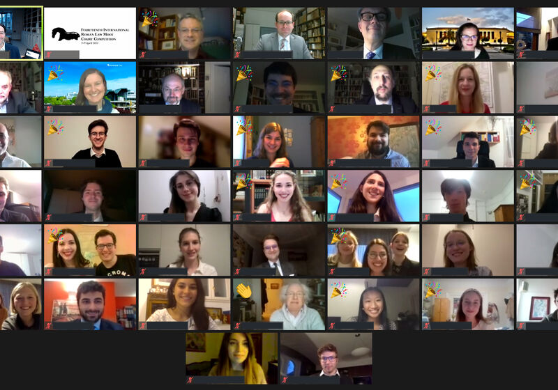 The University of Oxford defeated the Università degli Studi di Napoli Federico II in the Fourteenth International Roman Law Moot Court Competition on 9 April 2021. Yun Kei Chow and Ben Stanley for Oxford, with colleagues Henry Fahrenkamp and Kacper Kryk at the virtual bar table, and Renata Nigrelli and Eleonora Mainardi for Naples, with Beatrice O…