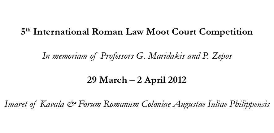 To preside at the Finals of the Fifth International Roman Law Moot Court Competition, held in the ancient Roman forum at Philippi, participants welcome as a special guest Professor Melchior Wathelet, Belgian Minister of State, former Judge of the European Court of Justice and former Deputy Prime Minister of Belgium. The Moot was organised by the Institute Mohamed Ali for the Research of Eastern Tradition and sponsored by the Alex Dino Foundation, the European Investment Bank and law firms Clifford Chance LLP, Potamitis–Vekris, Zepos–Yiannopoulos, Karatzas & Partners and Koimtzidis–Paparallis–Kogkalidis.